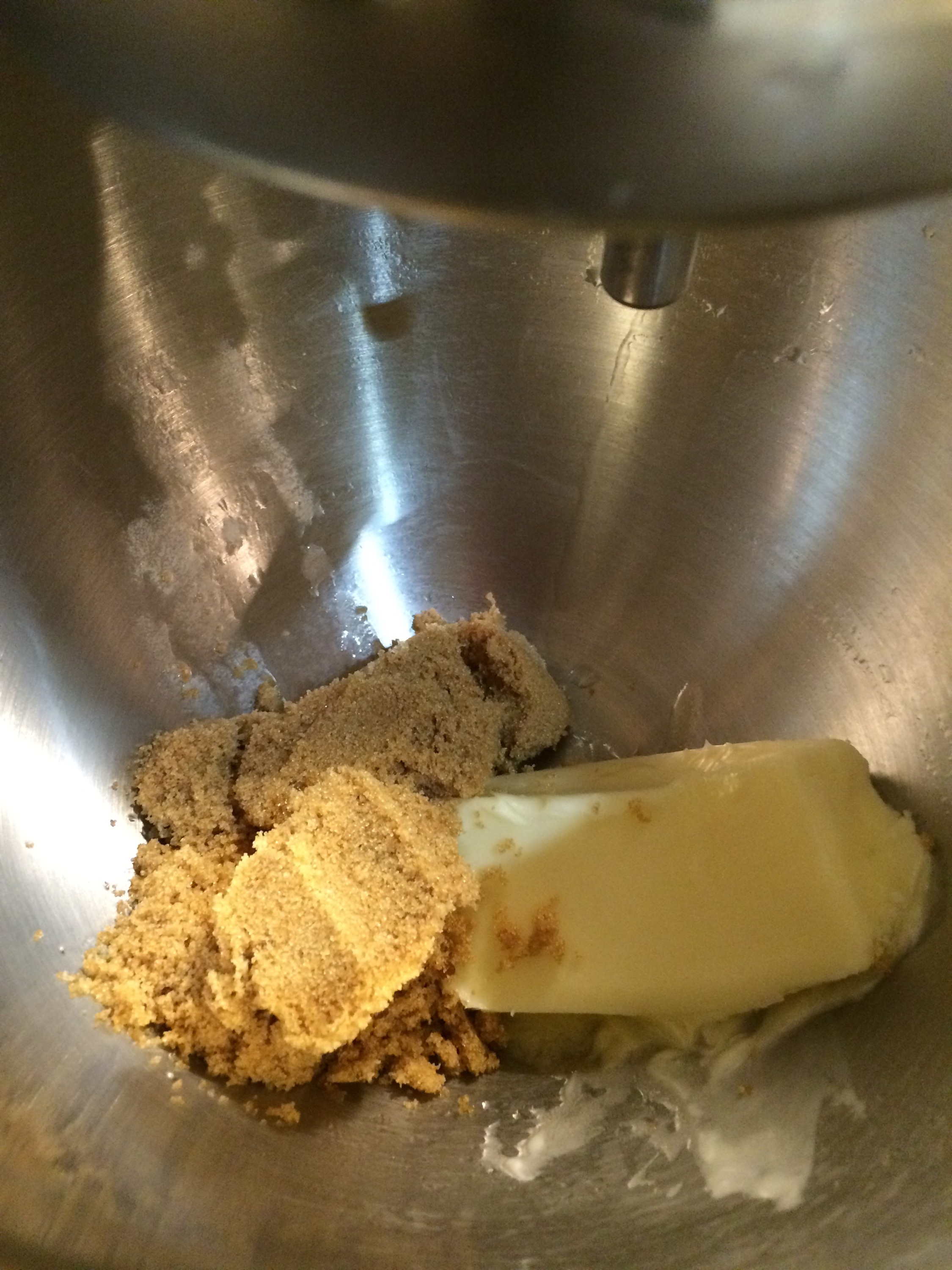 2) Cream butter, add the two sugars ,